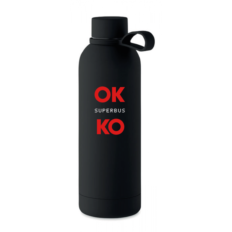 Bouteille isolante sous vide à double paroi en acier inoxydable recyclé ISOTHERME (90 % d'acier inoxydable recyclé et 10 % d'acier inoxydable) avec finition en caoutchouc et poignée en silicone. Anti fuite. Capacité : 500 mL